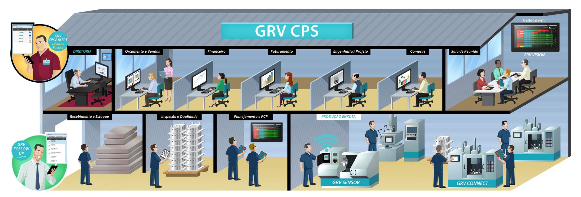 De qualquer lugar que esteja, é possível verificar o andamento do chão de fábrica, aprovar compras pendentes e até mesmo entrar em contato com seus clientes em questão de segundos.